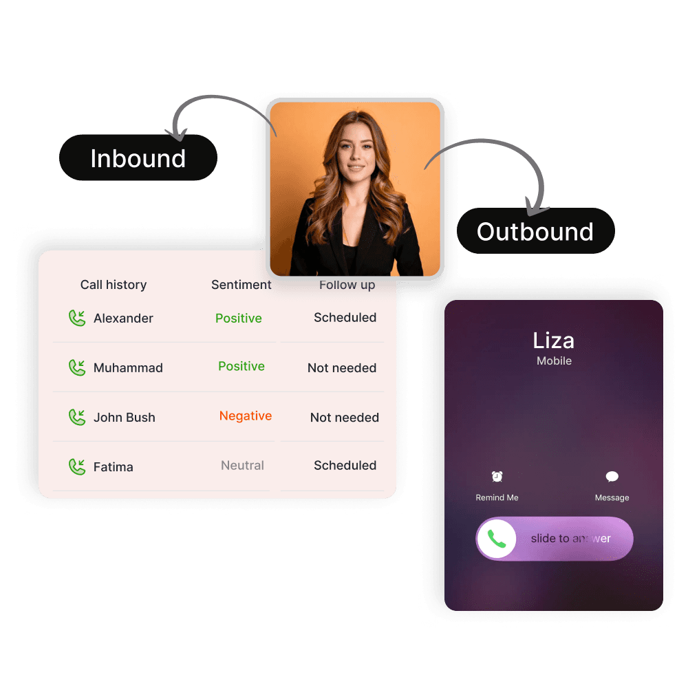 Liza is confident, persistent and driven. She builds your pipeline 24/7 with high quality leads and reaches out with constant followups until they convert, without getting tired or sick.